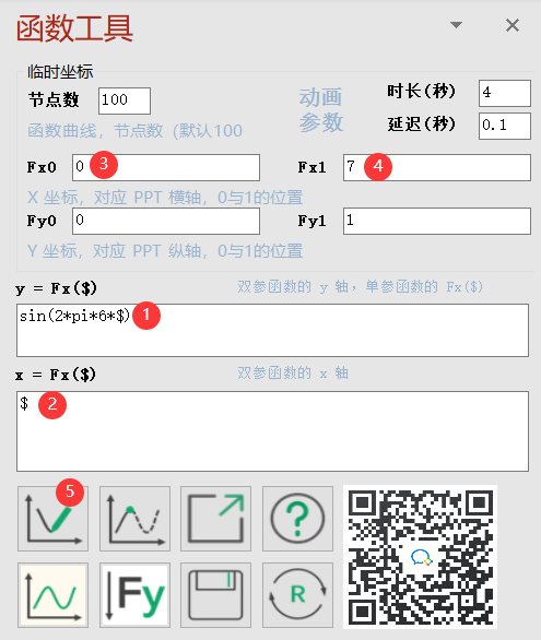 此方法门槛较高,没有那么直观。但优点是灵活、强大,几乎可以生成任意函数曲线。可以满足上图要求。因此这里选择此方法。在下面的教程中,对于函数工具中各个参数的意义,不再做讲解,如需深入学习请点击以上链接。