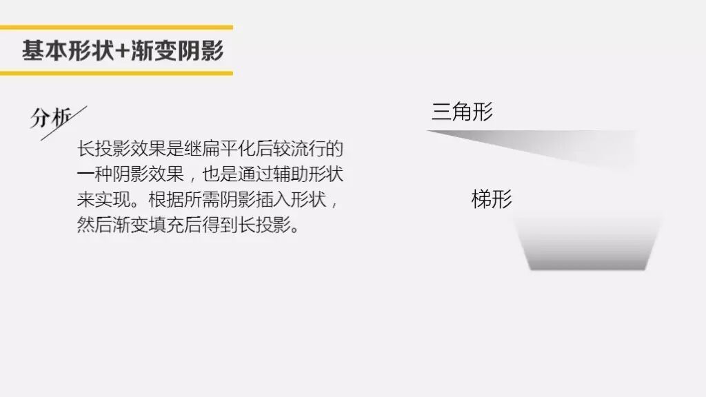 今天讲解长投影效果的设计。长投影效果是继扁平化后较流行的一种阴影效果,与上篇相似,也是通过辅助形状来实现。长投影效果一般通过基本形状渐变填充,或者对基本形状编辑顶点后设置渐变填充来实现 。