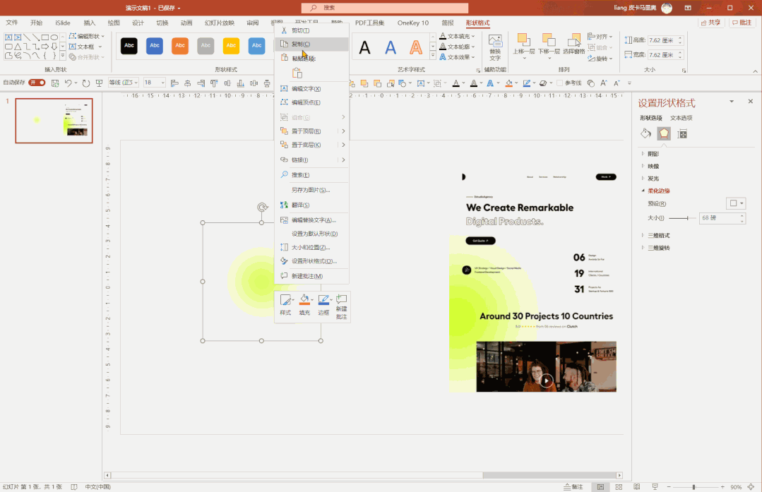 step3:复制形状粘贴成为图片,放大后放在适当的位置。