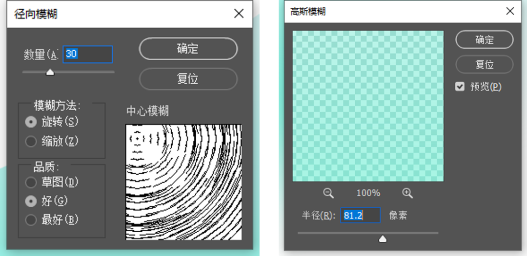 step3:栅格化图层,先对图层进行径向模糊,再进行高斯模糊。