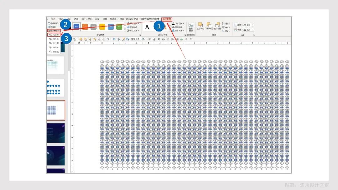 可以看到左下和右上有一些圆形阵列,这个效果也是在PPT中设计的。