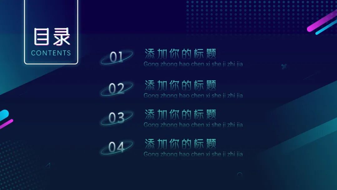 目录页的背景就是根据之前封面的背景风格进行了一些小的改动,设计的元素都是一样的。