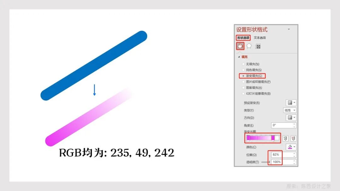 使用圆角矩形旋转了一个角度之后,调节的线性渐变。
