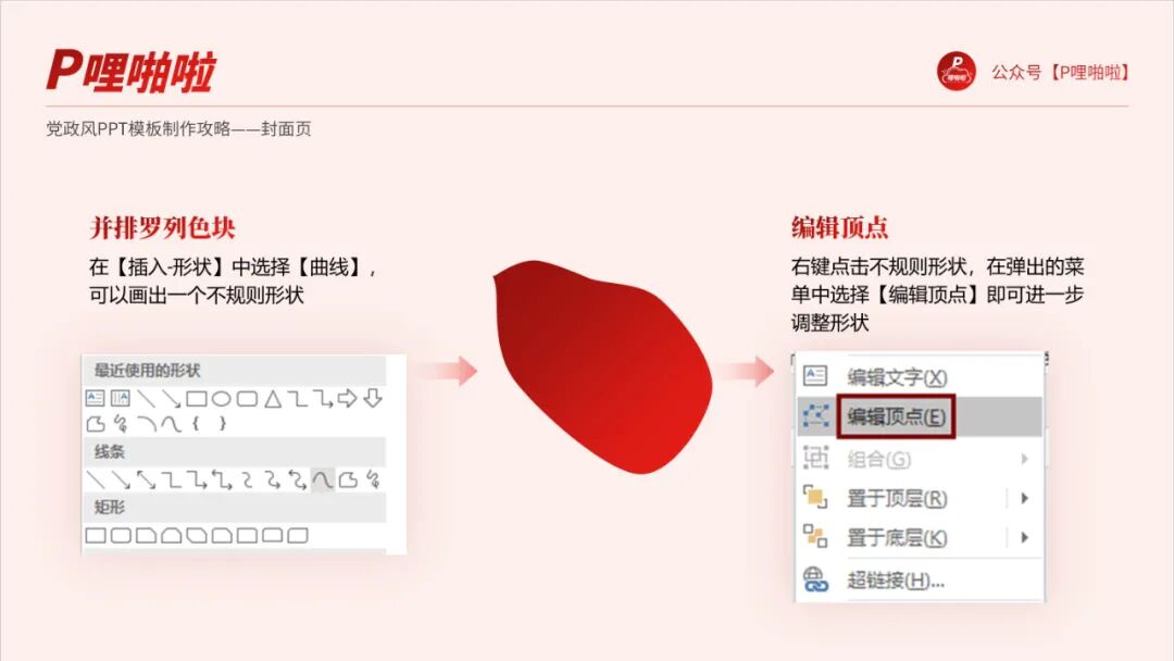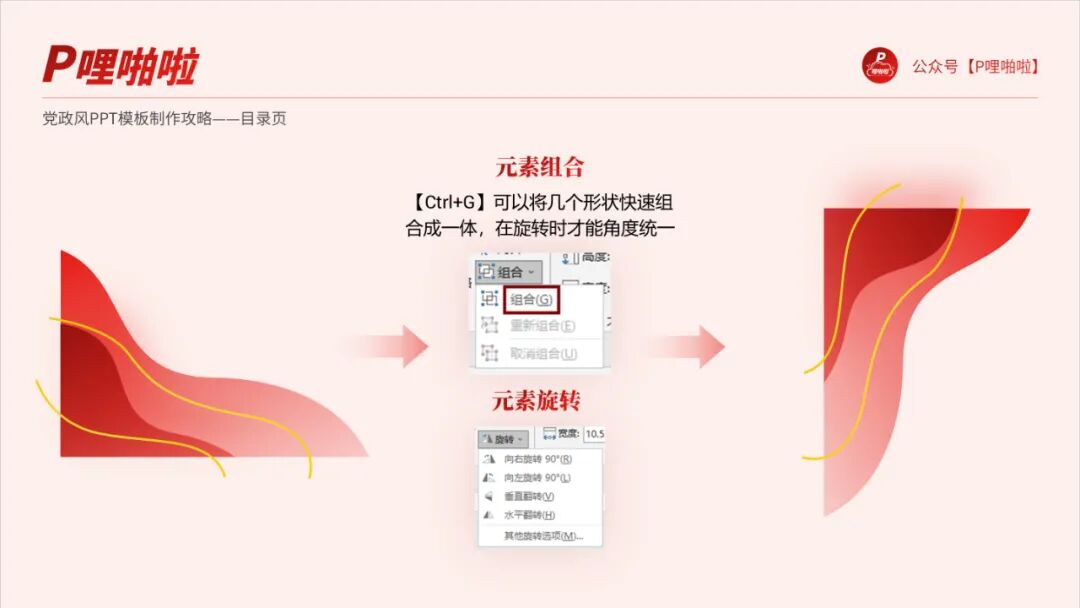 于是俺就尝试着用PPT自带的形状模拟出一种红旗飘扬、金带飞舞的感觉