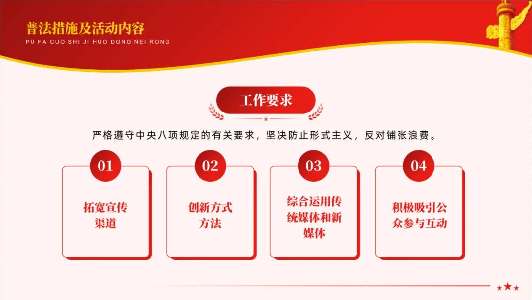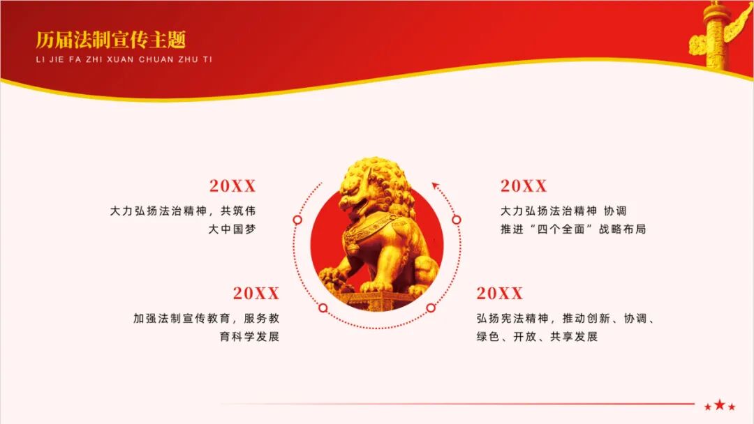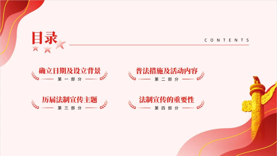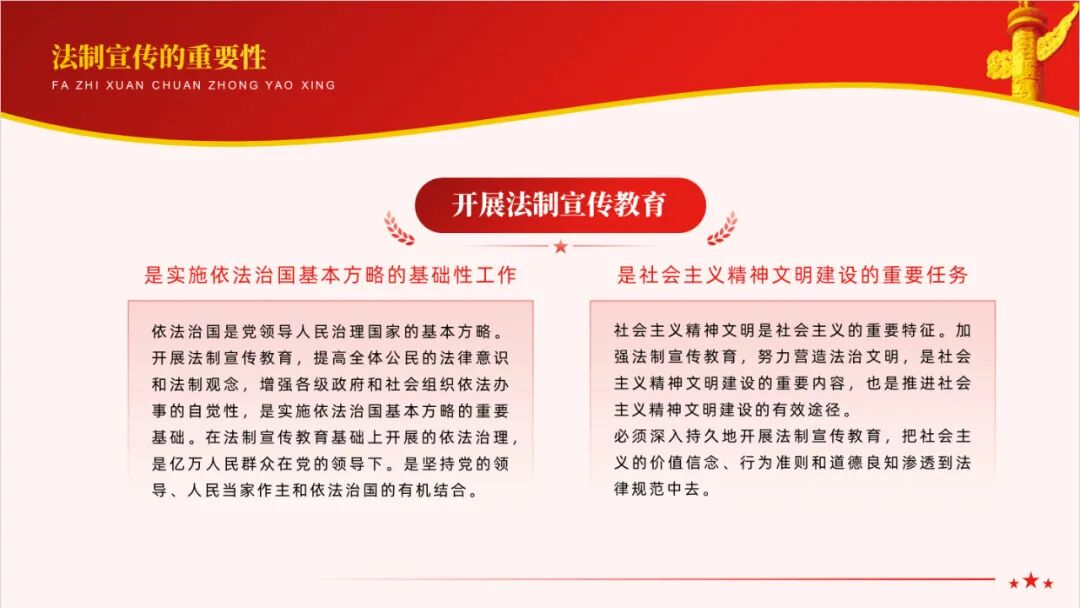 于是俺觉得可以做这么一份以法制宣传教育为主题的党政风PPT模板来紧跟时事