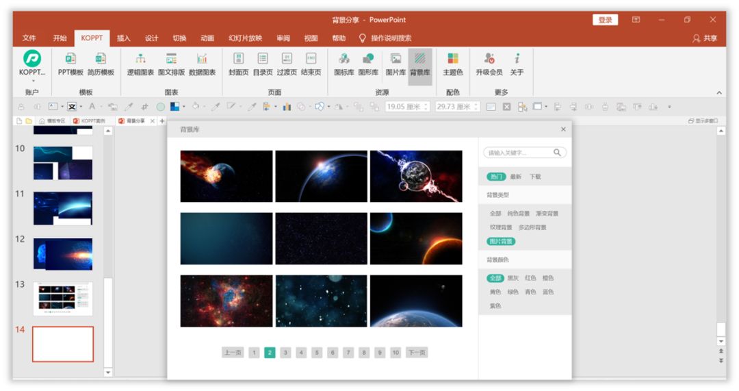 最后,如果想要多更的PPT背景,可以使用【KOPPT】插件直接导入PPT中。