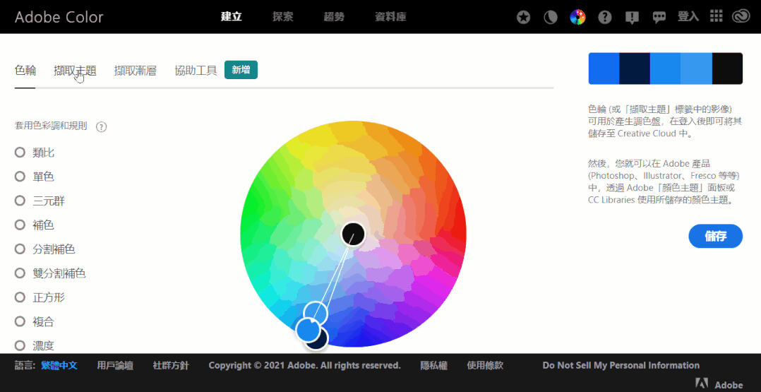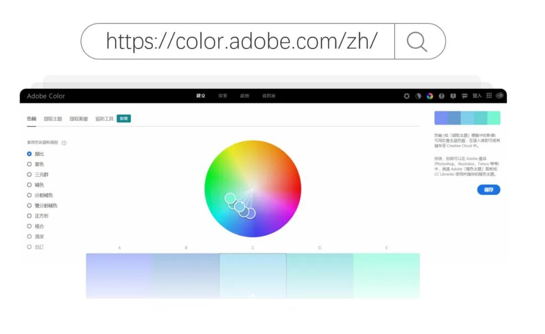 我们将图片直接上传到这个网站,就可以根据这个图片的颜色智能生成一个配色方案。