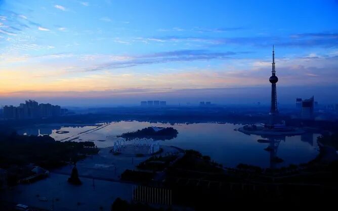考虑到图片中,右侧有电视塔,左侧留白更多,所以文字内容适合放在左侧留白处。