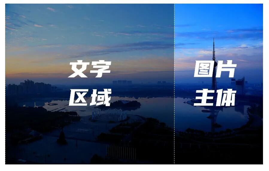 比如可以把图片中的电视塔凸显并做穿插设计,其他部分添加白色蒙版。