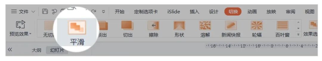 前面的页面制作好以后,添加动画的环节只需要用到【平滑】动画即可。