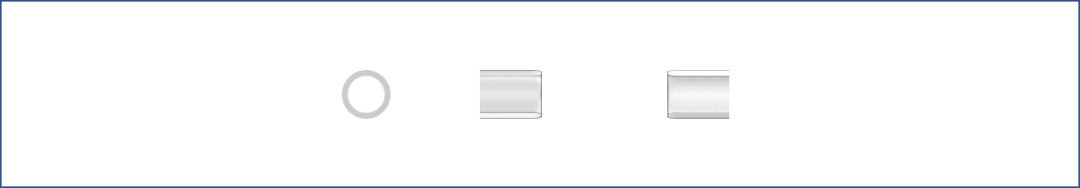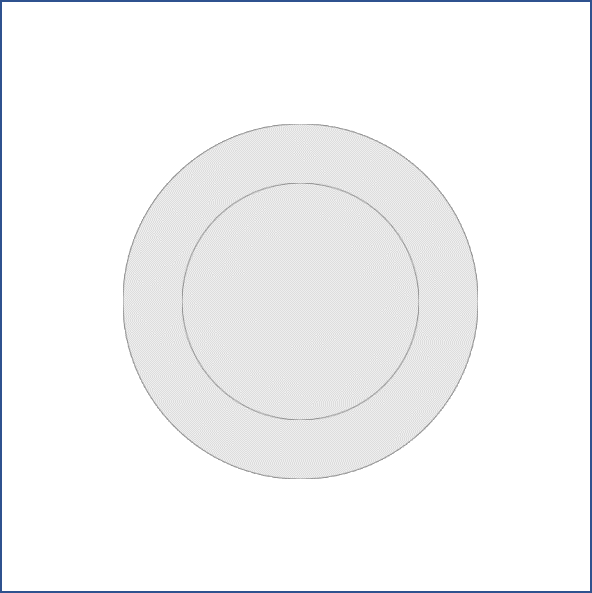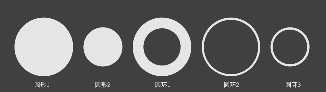 首先绘制基本形状,圆形1直径为6cm;圆形2直径为4cm;圆环1外径6cm,内径3.6cm;圆环2外径6cm,内径5.6cm;圆环3外径4cm,内径3.6cm。圆环均可由外径和内径大小的圆中心对齐,通过合并形状中的剪除得到。