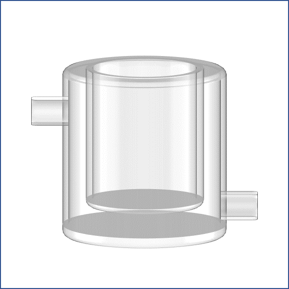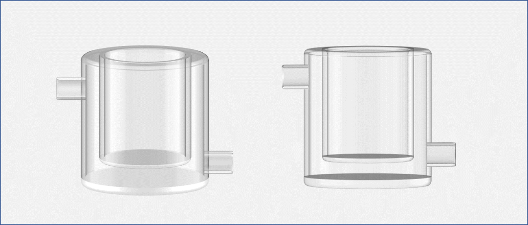 将上述绘制的进出水口分别放置两边合适位置,一个夹套烧杯模型就完成了。