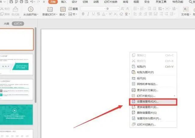 步骤二:在目标幻灯片上右击鼠标,点击“设置背景格式。”