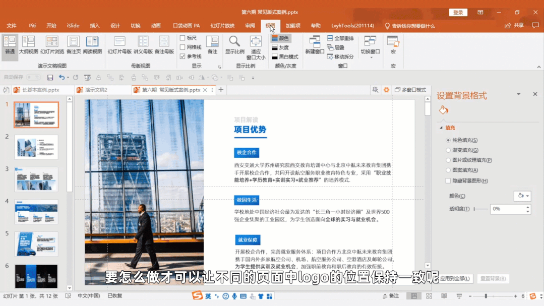 工作型的PPT都需要在PPT里添加一个公司logo作为水印,要怎么做才可以让不同的页面中logo的位置保持一致呢?