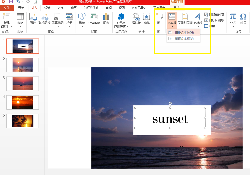 接着点击【插入】-【文本框】,输入文字,调整大小和字体。