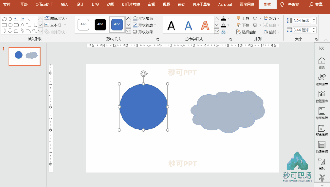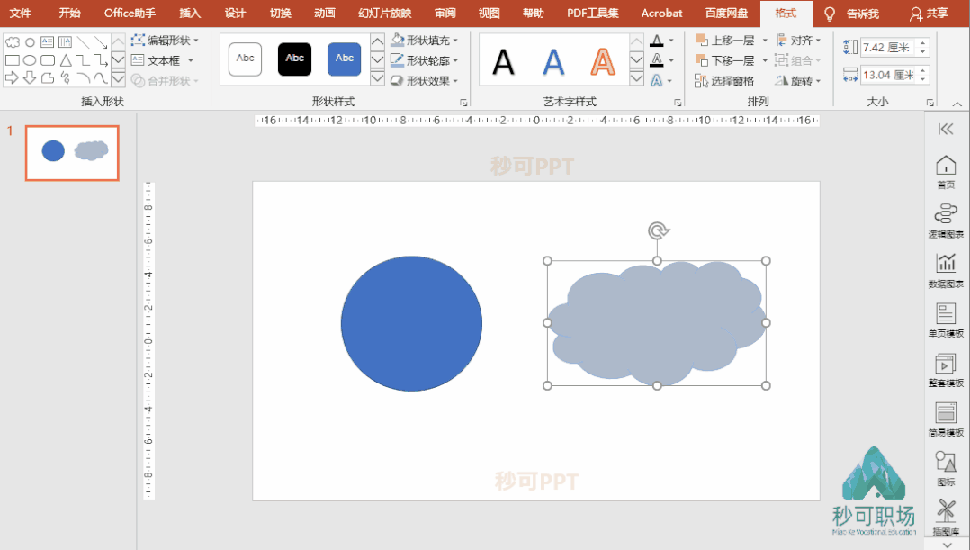 (PS:在office2010版本及以上,才支持布尔运算功能。还在使用07版office的小伙伴们,是时候下载更高版本的软件了。)