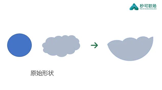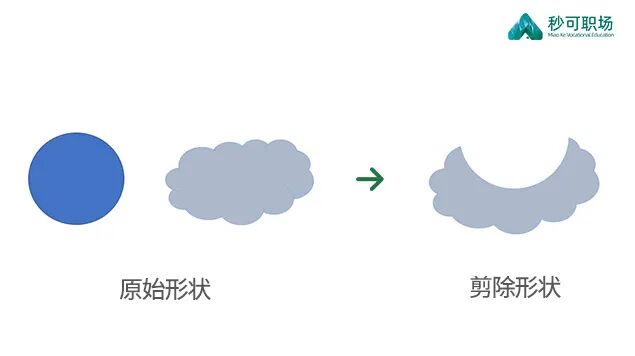 如下GIF,我们同样把圆形和云形组合,中间重合的部分,就被裁掉了: