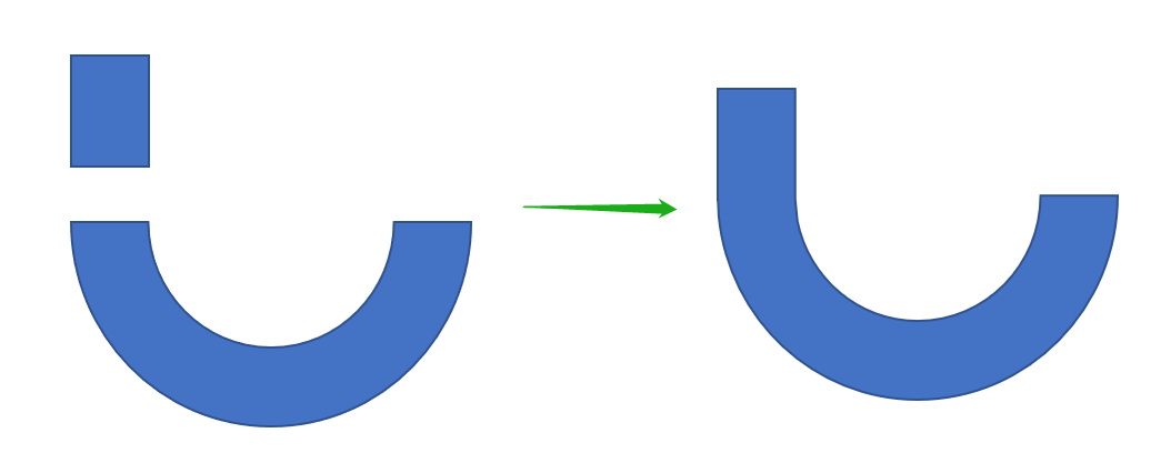 利用同样的方法,制作一个细一点的空心圆,再新建一个与之径宽相等的矩形结合成一个新的形状。