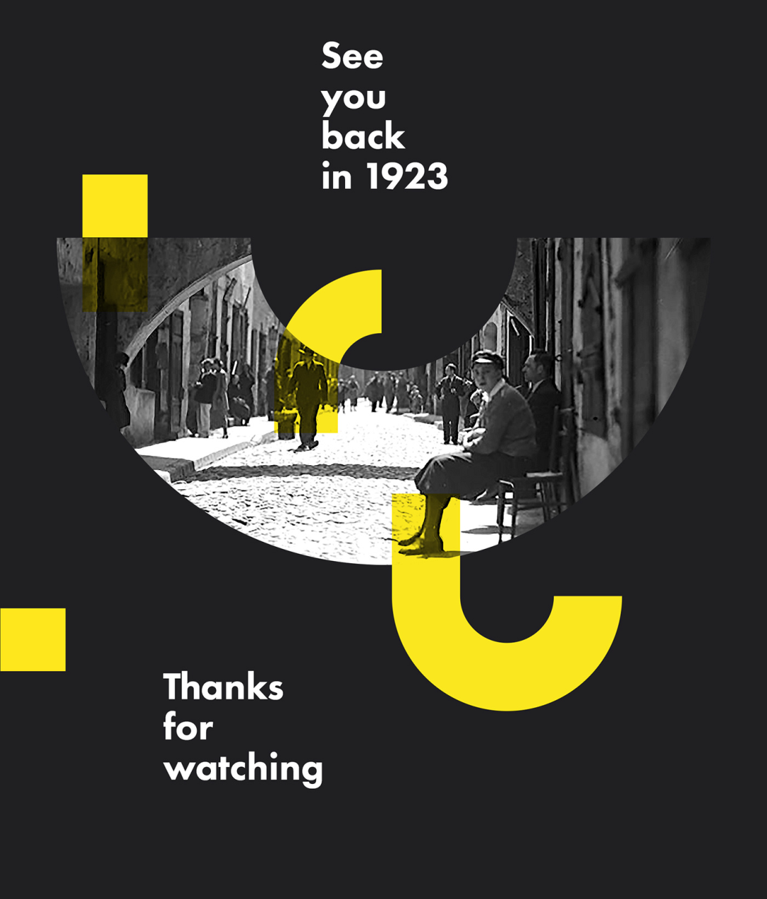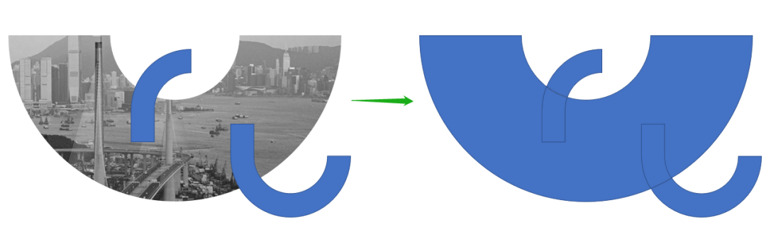 首先新建两个圆形,通过合并形状中的组合,做出一个比较宽的空心圆,之后新建矩形通过相交剪出一个半空心圆,填充在网络上找到的无版权城市图片,调整好位置。