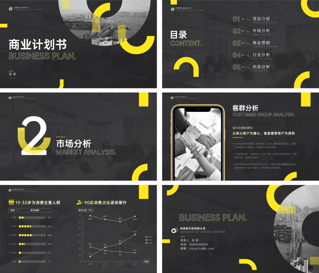 其他的页面都是依据封面页的元素延伸传承而来,没有特别的手法,没什么好拆解的。
