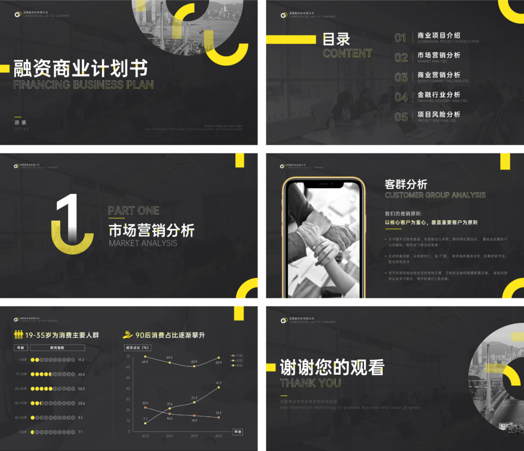 有较强的办公使用引导,比如使用了市场营销、金融贸易等商业元素较强的图片和装饰元素。