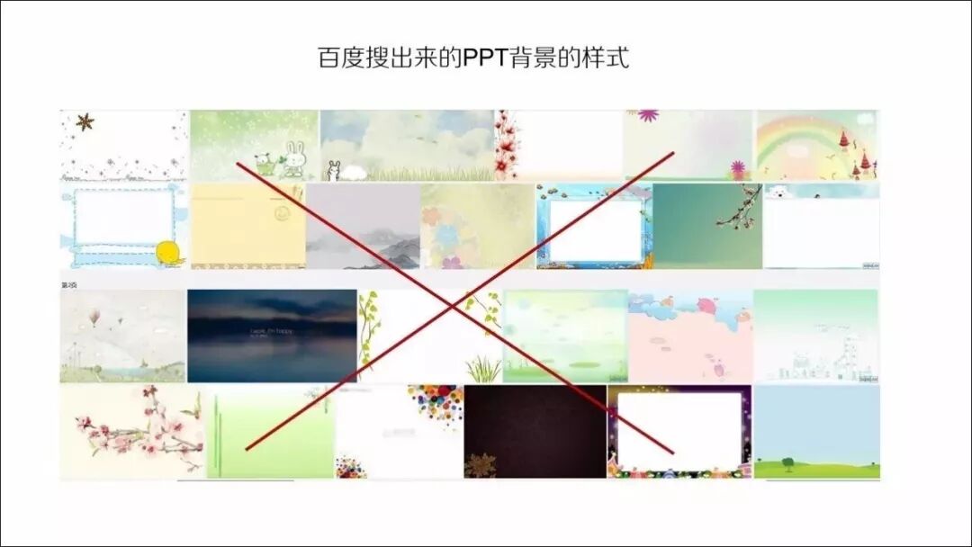 很多人喜欢直接从百度上找PPT背景(听起来有点绕),然而从百度上搜索出来的背景通常是花里胡哨,简直low到爆的,所以千万不要去干这种傻事。