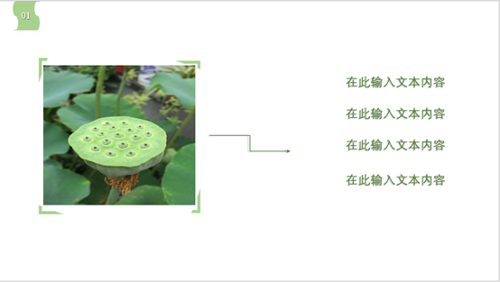 插入需要展示的图片内容,在形状中找到“半闭框”,添加在图片四个角,这样是不是就没有这么单调了呢?还是同样利用形状小元素对页面进行简单的“小心机”设计。