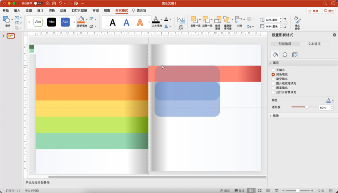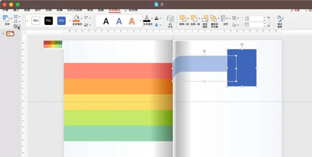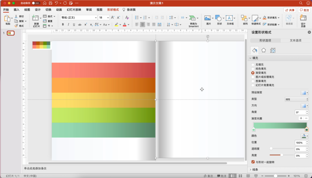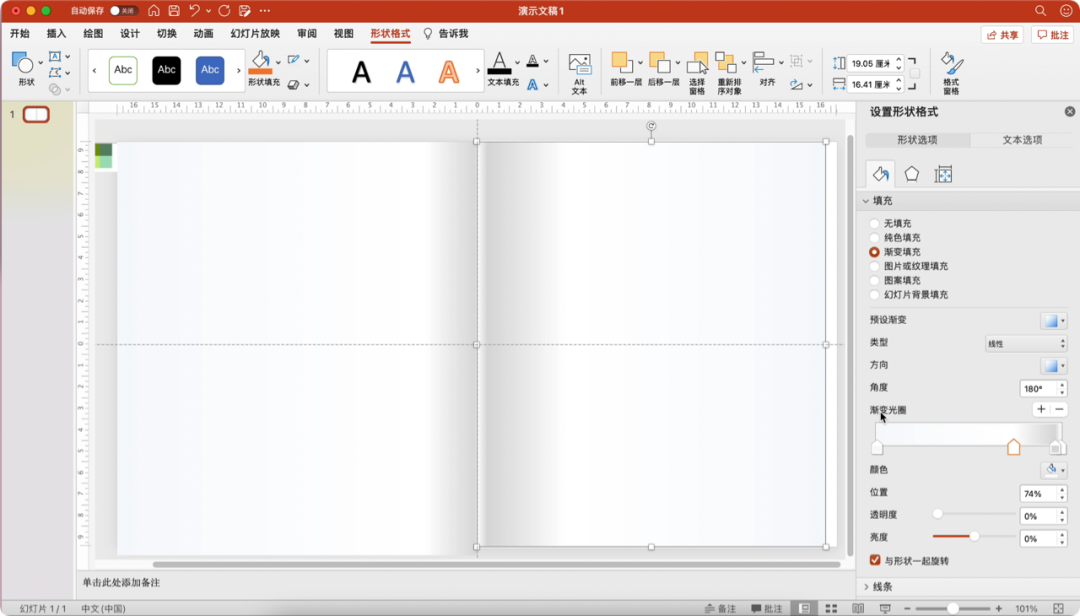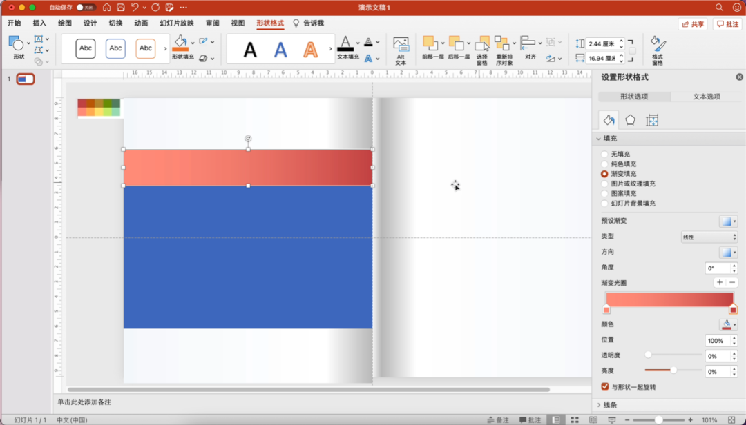 首先是给PPT加个书页效果,插入两个矩形,分别填充渐变色,