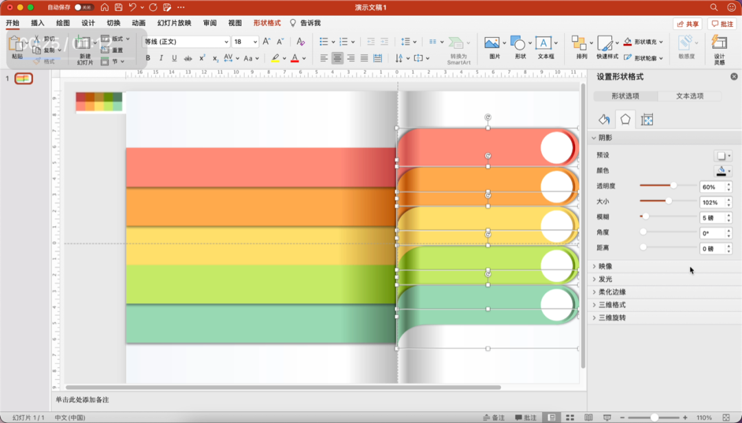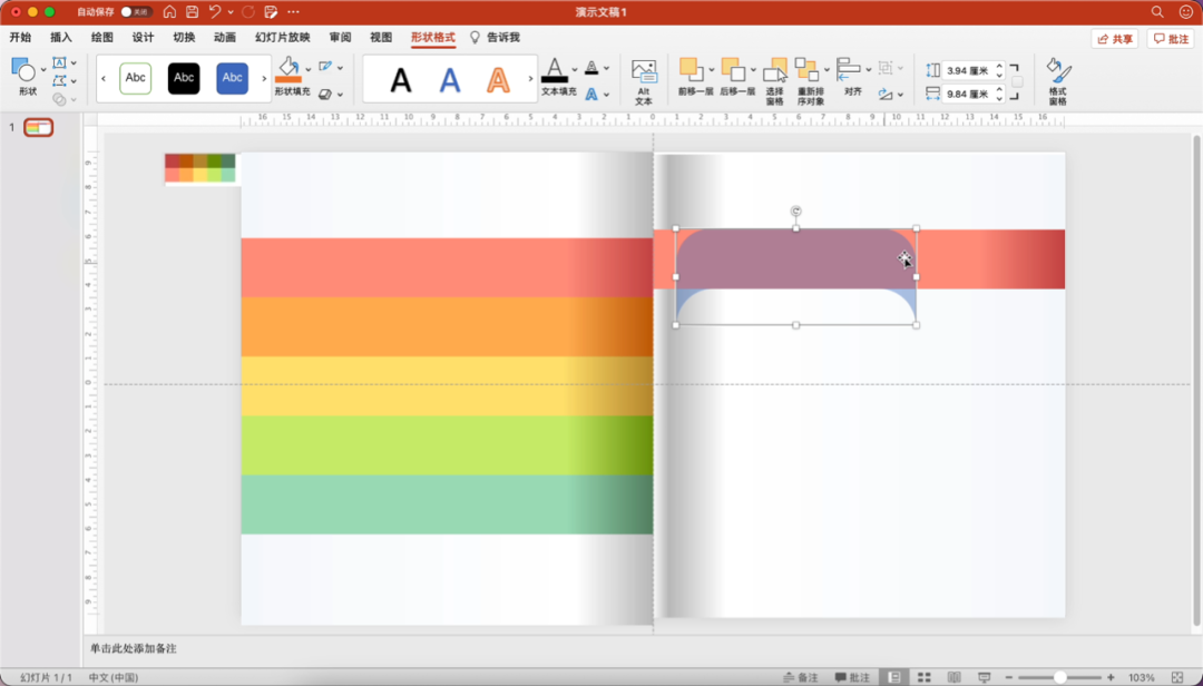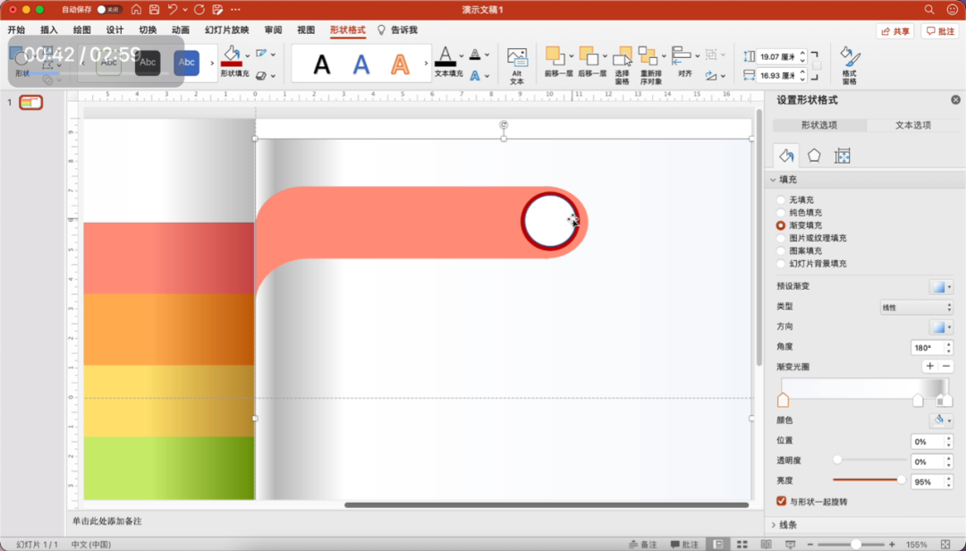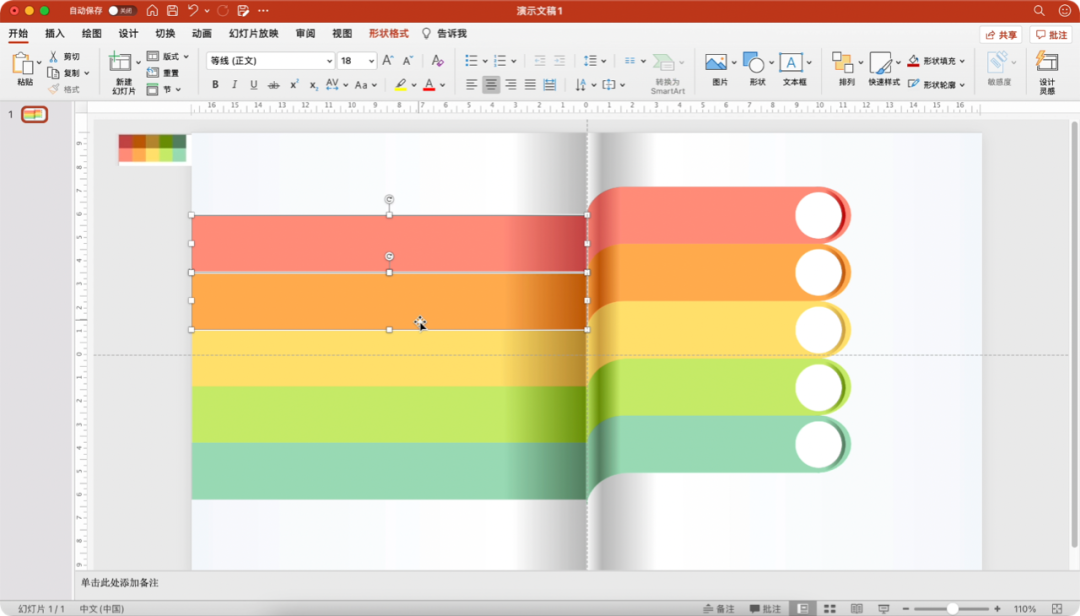 参考左侧矩形的配色,为右侧的形状填充渐变色。