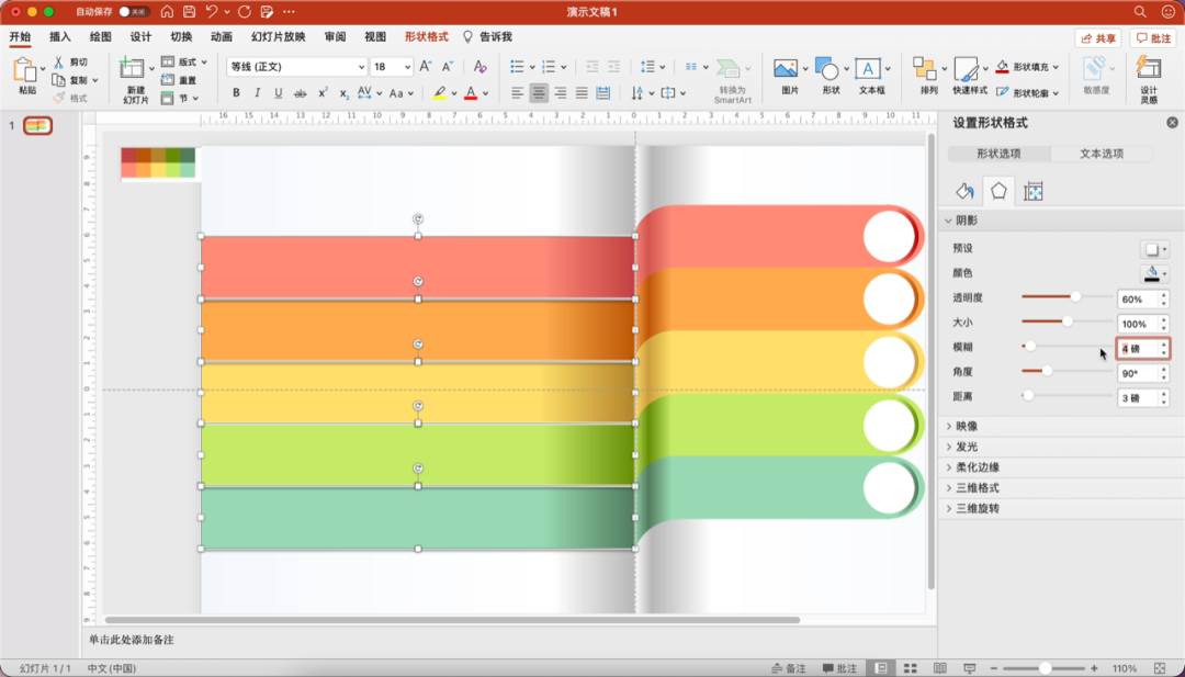 给左右两边的矩形分别设置阴影效果。