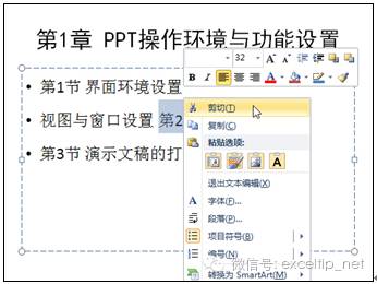 步骤1 选择要移动的文本,右击选区并在弹出菜单中选择“剪切”命令,如图3-25所示。
