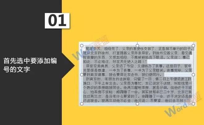 1、首先选中要添加编号的文字。
