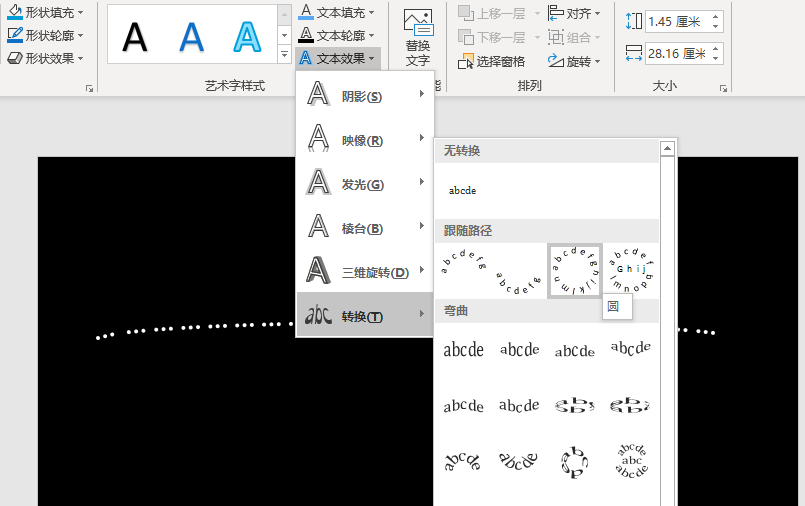 看明白了吧,在文本转换中,有不同的弯曲效果可以选择,便可轻松做出各种配图。
