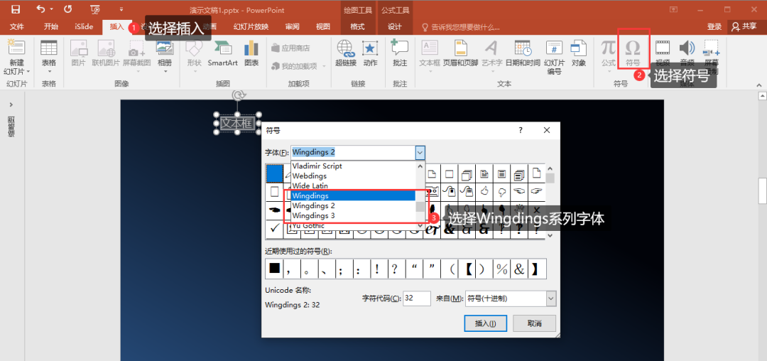 首先我们要学会在PPT中插入特殊字符,方法很简单——