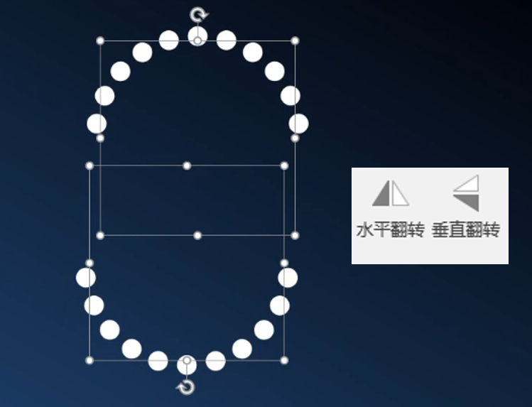 5、复制一份字符组成的半圆,然后执行垂直翻转和竖直翻转,或者直接拖动旋转其180度,让其成为镜像的下半圆。