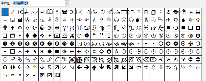 Wingding是一种系统默认安装的特殊字体,在Wingding系列字体的字符库中,有着大量的特殊字符,感兴趣的话可以找来多翻一翻,说不定你一直想找的图标形状就在这里。