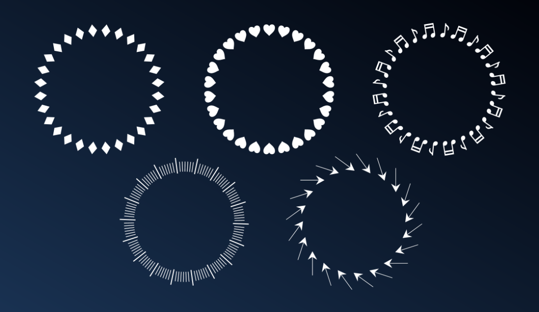 同样的方法,我们可以根据制作PPT时的需要,发挥想象力,绘制不同形状组成的圆圈——这比直接用形状来围圆简单快捷多了。