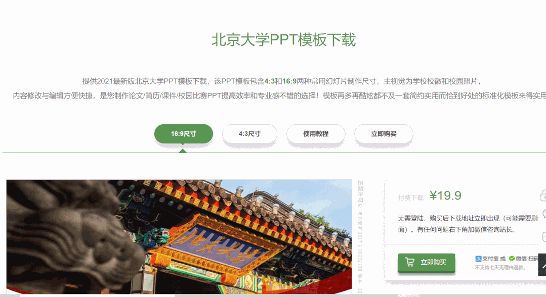 比如我们搜索北京市——北京大学的PPT模板,弹出如下页面: