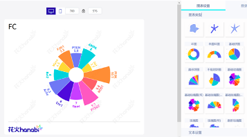 左侧会自动生成图片,然后点击图标设置,对图片进行美化。可以美化的选项有:图标类型、文本、图表、颜色、图例、水印、数据格式、提示信息。