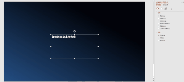 当我们右击文本框,并选择“设置形状格式”,在屏幕右侧就弹出设置窗格。