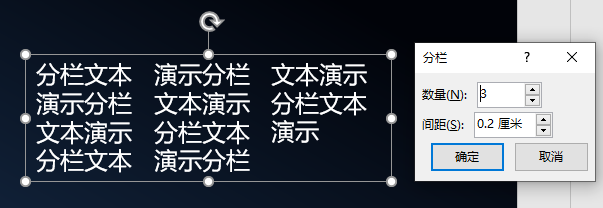 ▶ 分栏设置:点击后弹出分栏窗口,可以设置在单个文本框内分为多栏。