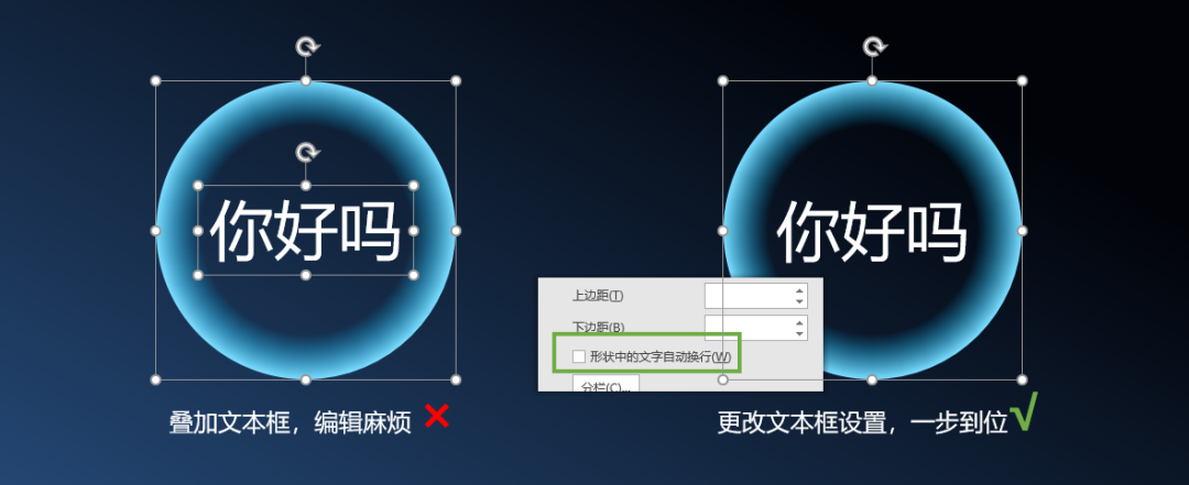 实际不用这么麻烦,我们只需要更改形状的文本框设置——取消勾选“形状中的文字自动换行”即可。