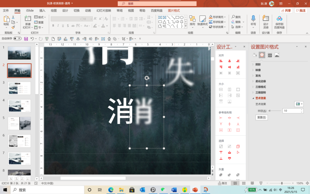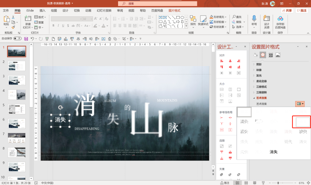 这是因为只有转换为图片,才能用PPT自带的艺术效果“虚化”