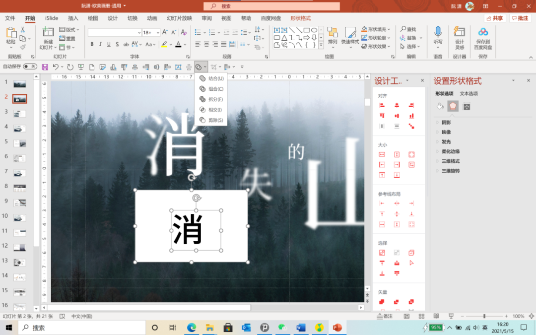 于是围绕着这个背景,我打上了符合主题的文案,如“雾气森林”“朦胧山脉”“消失的山脉”这些。