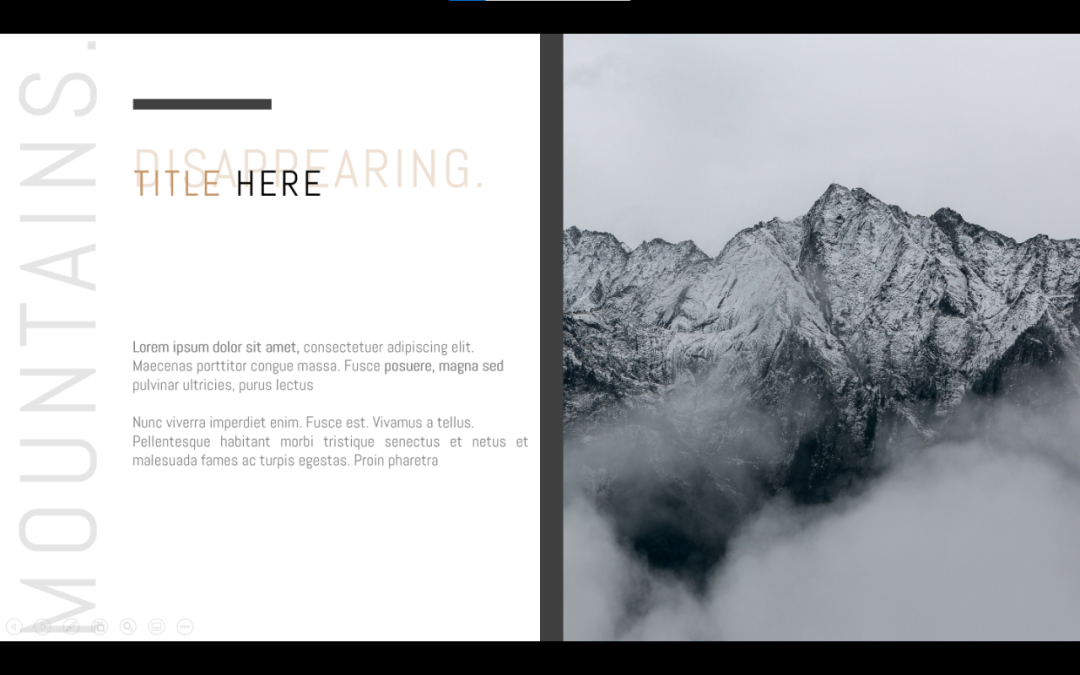 所以我调高“Mountains”的透明度和大小,让它充当背景文字,修饰整个标题“TITLE HERE”。