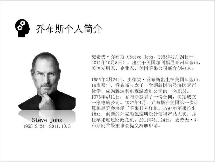 其实黑白色的图片直接用黑白色的文字和背景做搭配是最好的(还可以灵活运用office自带的小图标),简洁大气高逼格,着实不费力赢很大。