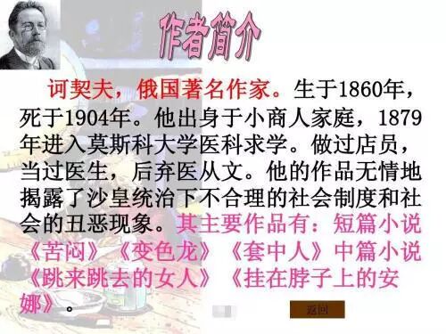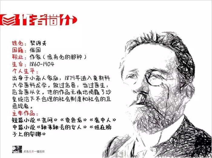 首先,小编我众筹100万寻找一个叫诃契夫的俄国著名作家。