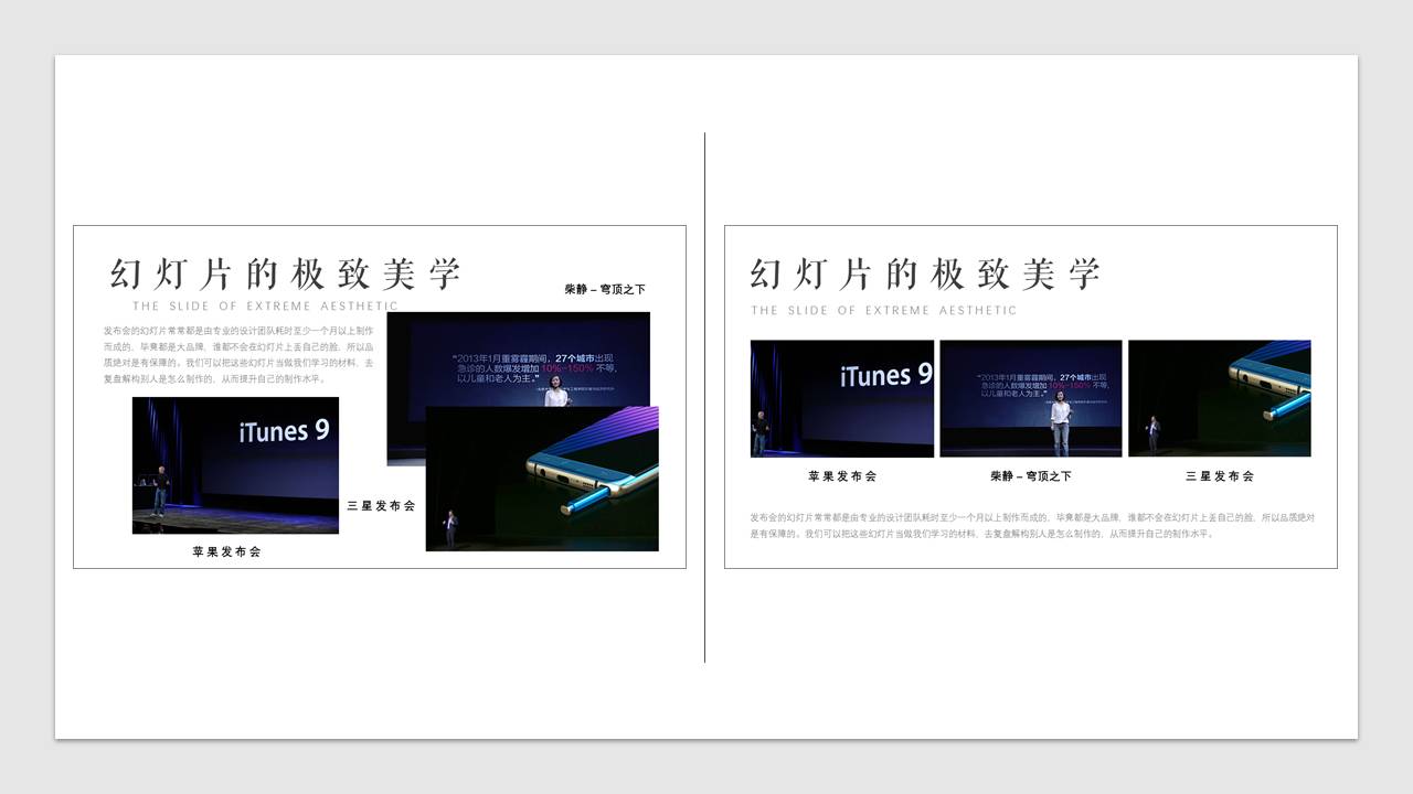 而右边的幻灯片,内容都在页边距内(通过参考线大家应该能看清楚),这样页面的布局才比较规范,而且阅读起来也比较舒服。