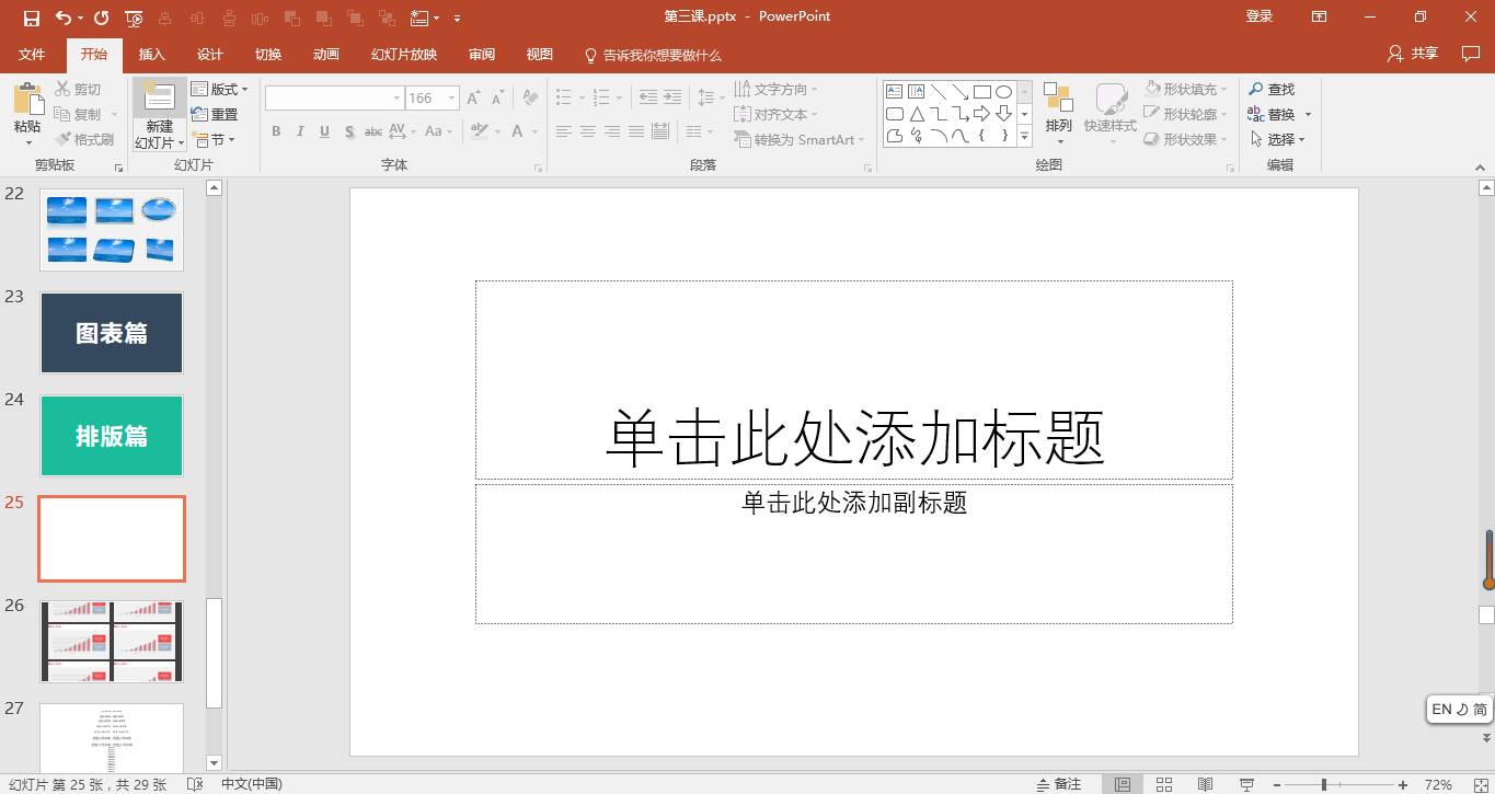 打开Office之后,你会看到系统内建了默认的版式,提示你上面输入标题,下面输入副标题,很多人就按照系统的提示,把文案放进去了。