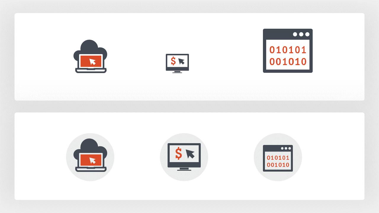 如上图所示,上方的三个图标风格都是不同的,左边第一个线条较粗,单色;中间那个线条较细,单色;右边那个色彩丰富。